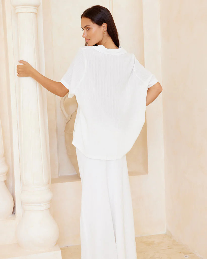 The Canggu Set by Jatea The Label has a fitted shirt with an oversize top.